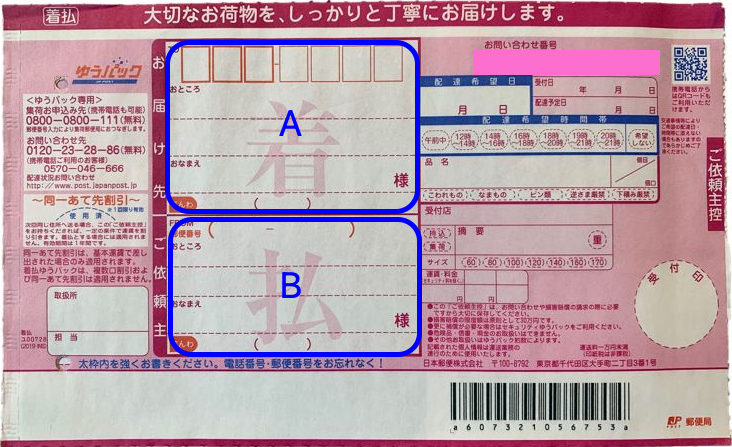 | 送付物② | 返送用送り状(ゆうパック着払い伝票) | |